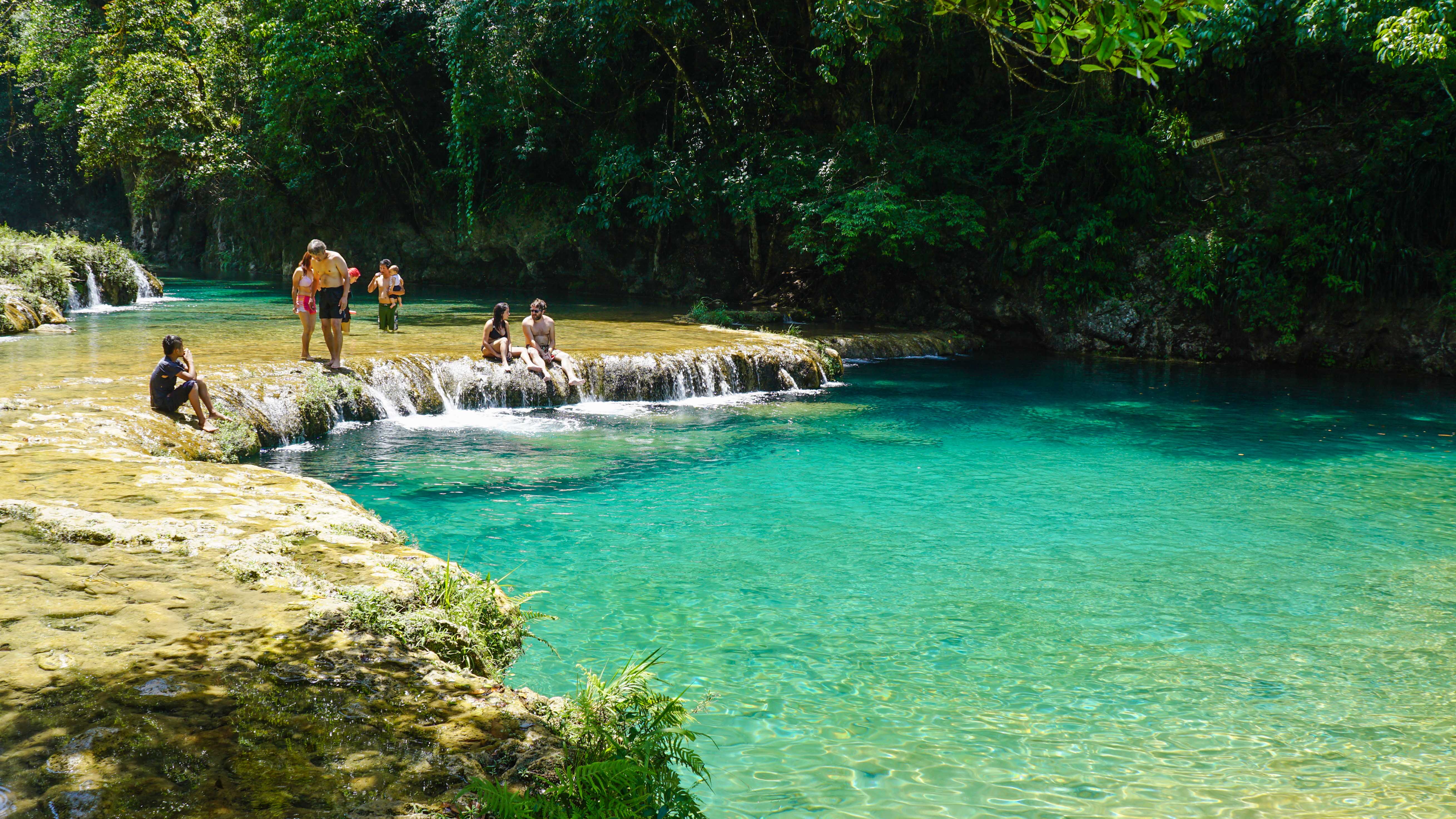 Der eigentliche Grund unseres Trips ist aber das Naturschutzgebiet Semuc Champey. Wasserfälle, Höhlen, türkisgrüne Wasserbecken, ein riesiger Spielplatz made by nature.