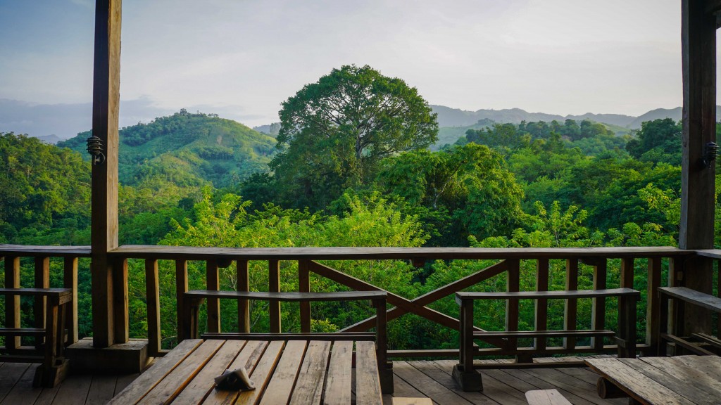 Ein großes, offenes Holzhaus umgeben von unergründlichem Dschungel. Als wir dort spätabends ankommen erwartet uns eine unglaubliche Atmosphäre, alles ist in warmes Licht getüncht, Besucher aus aller Welt sitzen an langen Holztischen beim Abendessen. An der Bar hängen Schaukeln statt Hocker, es gibt Live Musik, absolute Harmonie. Bei dieser besonderen Atmosphäre erwarten wir jeden Moment pinke Einhörner die durchs Bild galoppieren…ein Gefühl wie in einer anderen Welt, Utopia eben. Definitiv ein Ort an dem man hängen bleiben kann, manche hier sind seit Wochen da, ein junger Franzose der den ganzen Tag in einem Dittsche-Bademantel rumläuft schon über ein Jahr. Er hat seinen Pass verloren und erweckt nicht den Eindruck als würde er irgendwann in naher Zukunft einen neuen benötigen…